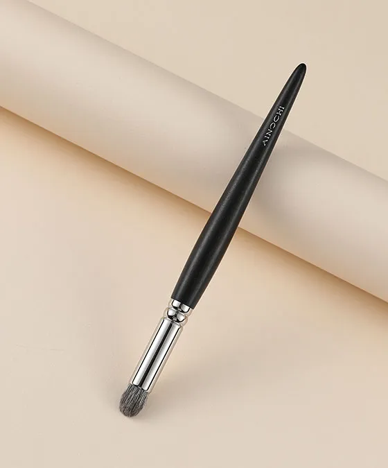 - Gently load the AIN-S215 Small Round Eyeshadow Brush with powder eyeshadow, then tap off any excess for controlled application. Use targeted pressing and blending motions on mobile lid, crease, and inner corners to build precise color definition.