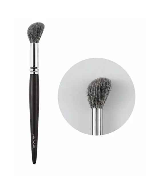 Use AIN-S5530 Angled Round Highlighter Brush to illuminate facial high points in just a few strokes. The medium blue squirrel angled round head is designed for fast, even highlighter application across cheekbones, nose bridge, or brow bone. Gently load the brush with powder highlighter, tap off excess, then press and sweep to build natural radiant glow without heaviness.