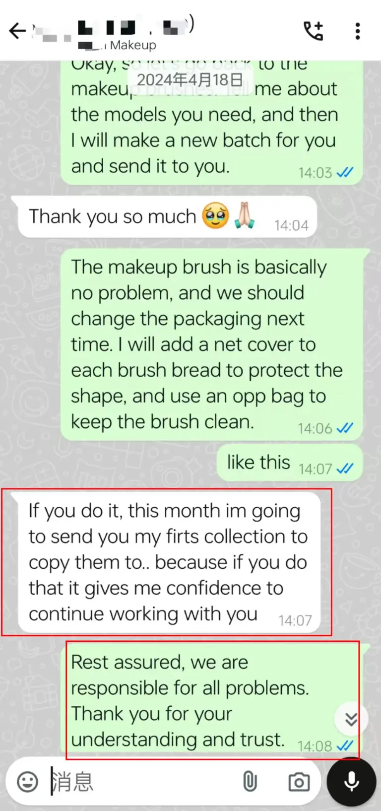 Для новых брендов мы поддерживаем минимальный объем первого заказа в размере 300–500 штук. Это помогает новым брендам начинать с низким риском — при этом профессионалы в области кистей предоставляют полное экспертное сопровождение на всех этапах развития вашего бренда.