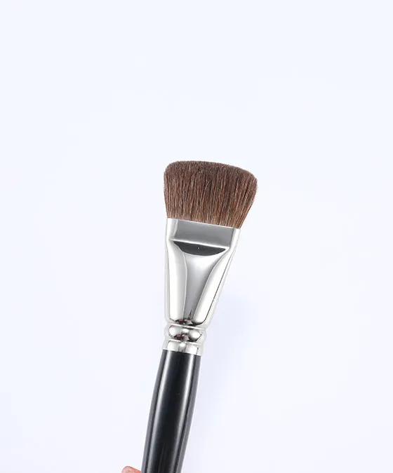- After placing highlighter, use the flat edge to refine transitions and intensify high points. The premium pony hair delivers pigment effortlessly, achieving a sharp, professional finish without patchiness.