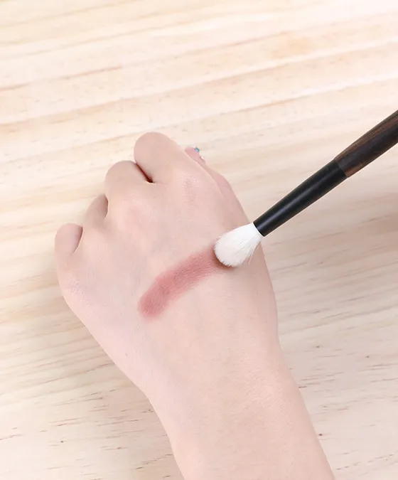 • Continue swiveling along lid edges and brow bone to eliminate harsh lines and create airy depth. The premium goat hair shears pigment softly, delivering a blurred, professional eyeshadow finish with zero patchiness.